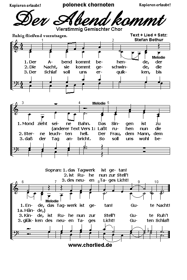 Abendlied (auch zum Abschluß der Chorprobe)